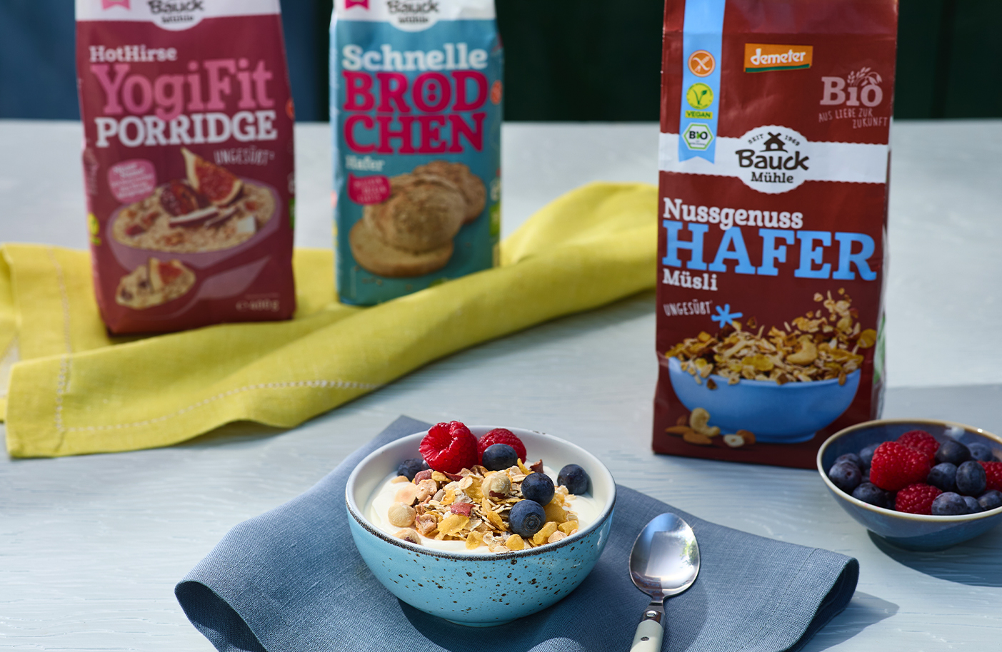 Ob knusprige Brötchen, saftige Brownies, Hafer-Pancakes, Pinsa-Teig, Yogi Fit Porridge oder Hafermüsli: Die Backmischungen der Bauck Mühle bringen norddeutsche Bio-Qualität ganz unkompliziert in Ihre Küche. Viele Sorten sind glutenfrei oder auf Haferbasis und lassen sich im Handumdrehen zubereiten – für bewussten Genuss ohne großen Aufwand, vom Frühstück bis zum Kuchen am Nachmittag.