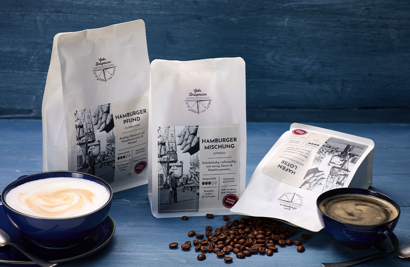 Die Gebr. Brügmann Kaffeerösterei röstet ihre Bohnen in traditionellen Trommelröstern vor den Toren Hamburgs, langsam, schonend und mit ganz viel Handwerkskunst. So entstehen charaktervolle Kaffees von mild bis kräftig, die jeden Morgen ein kleines bisschen besser machen.