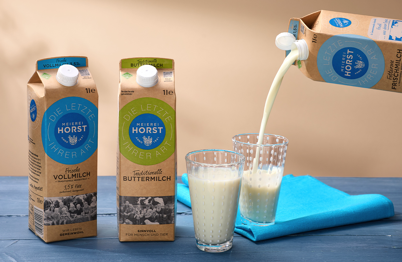 Die Meierei Horst bei Elmshorn ist eine der letzten traditionellen Meiereien Schleswig-Holsteins und verarbeitet regionale Milch noch schonend und in echter Handarbeit. Aus der hochwertigen Rohmilch entstehen frische Vollmilch und cremige Butter mit unvergleichlichem Geschmack – ein Stück norddeutsches Milchhandwerk für Ihre Stullen.