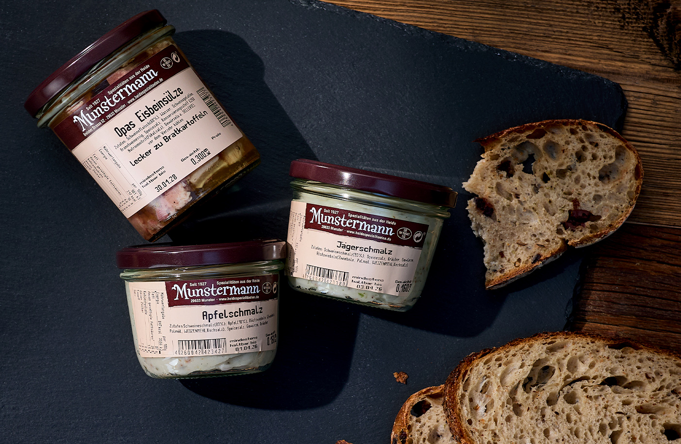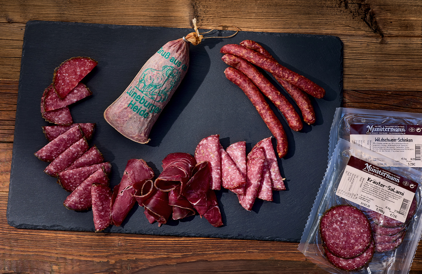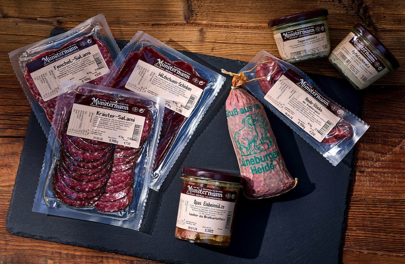 Seit 1927 steht die Fleischerei Munstermann aus Munster für handwerklich hergestellte Wurst- und Fleischspezialitäten aus der Lüneburger Heide. Verarbeitet wird überwiegend Fleisch aus der Region, das in eigener Produktion zu Klassikern wie Heideknacker, Mettwurst, Schinken oder Leberwurst veredelt wird – ergänzt durch herzhafte Eintöpfe im Glas.