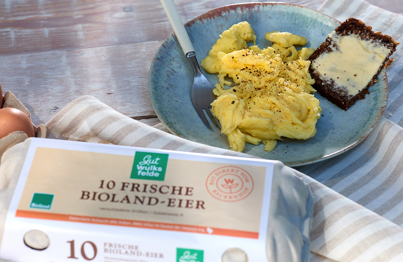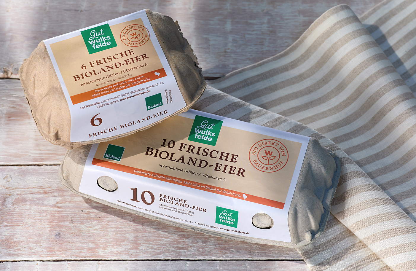 Die Bio-Eier vom Gut Wulksfelde stammen von Hühnern, die nach ökologischen Richtlinien gehalten werden und viel Platz, frische Luft und Auslauf genießen. Das Futter ist bio, gentechnikfrei und überwiegend aus eigenem oder regionalem Anbau. Die kurzen Lieferwege – auch zu uns nach Alsterdorf – sind gut für Geschmack und Umwelt.